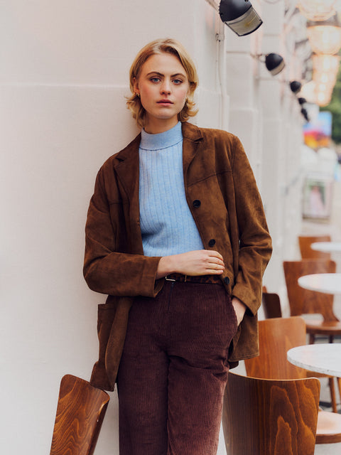 Cuppa’s timeless blazer – longline, single-breasted and ever-so boxy - features a low-sitting button to maximise comfort whilst softly sculpting the body at its most flattering point. Her "Miracle Trousers" do precisely as they say on the tin – elongate your legs and hold you in, just as every miracle should.