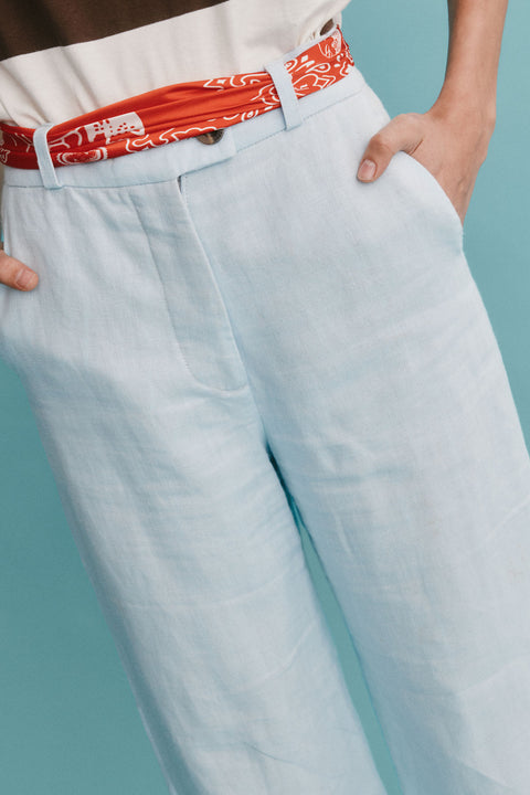 Meet our Spring hero, the Mint Cream suit. In soft pale blue, this linen suit set includes a single breasted longline blazer and our ‘Miracle’ wide leg straight trouser. A summer essential; with relaxed, and very breathable fabric, making her the ultimate all year round staple.