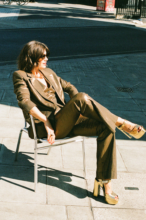 We are super proud to have collaborated with ALIGNE to create this mega, epic, super duper PARTY SUIT. Crafted in the Kipper Atelier, from an original ALIGNE consciously minded gold lame fabric.