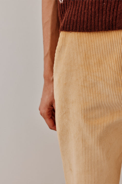 Elevate your wardrobe with our ‘Miracle’ Tailoring trousers, crafted from luxurious corduroy fabric for a soft, textured feel. Designed with a high-waisted fit and wide straight legs, these trousers offer a flattering silhouette that combines comfort with timeless style.