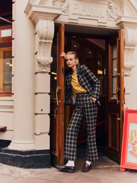 Meet Pigeon, our delightfully chic-meets-cosy wool suit, exquisitely crafted from our KIPPER tartan. Pigeon’s longline, single-breasted blazer playfully hints at a boxy shape with a low-set button; perfectly positioned to add subtle definition as well as comfort. Pigeon’s "Miracle Trousers" work their magic here – they hold you in, they lengthen your legs, they leave you feeling your very best.