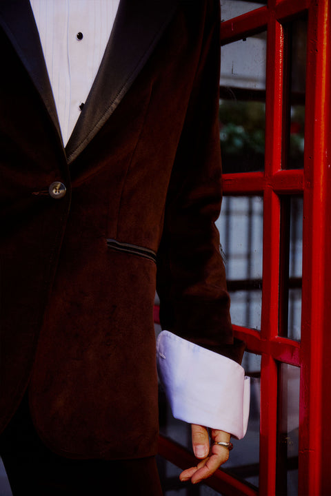 Meet KIPPER's first proper party piece - The Truffle Tuxedo. A classic yet slightly oversized shape, with pure British heritage. A tuxedo with attitude that will ensure you have a wonderful time. A chic combination of chocolate velvet and black satin detailing, that will make you stand out in style. A piece that you will have in your wardrobe forever.